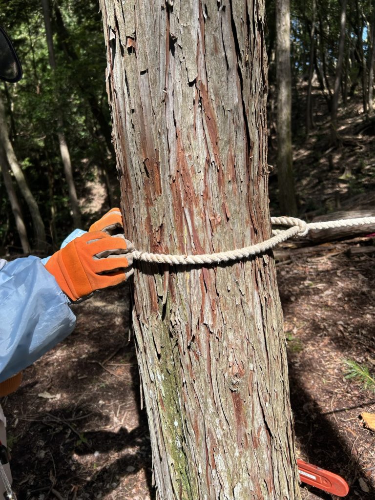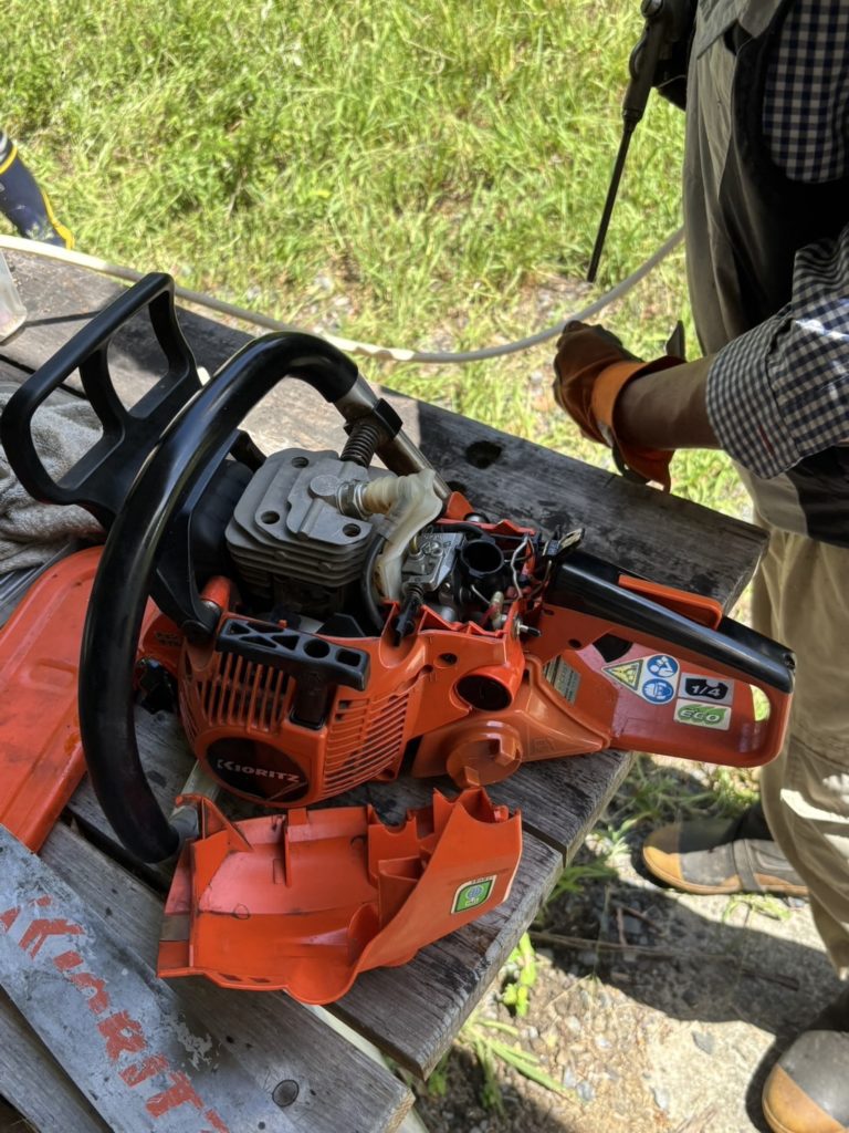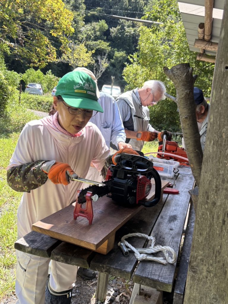 今日は女子がチェーンソーを持って玉切りなどをしたり、ベテランの男性からロープワークなどを教えて貰いながら活動をしました。